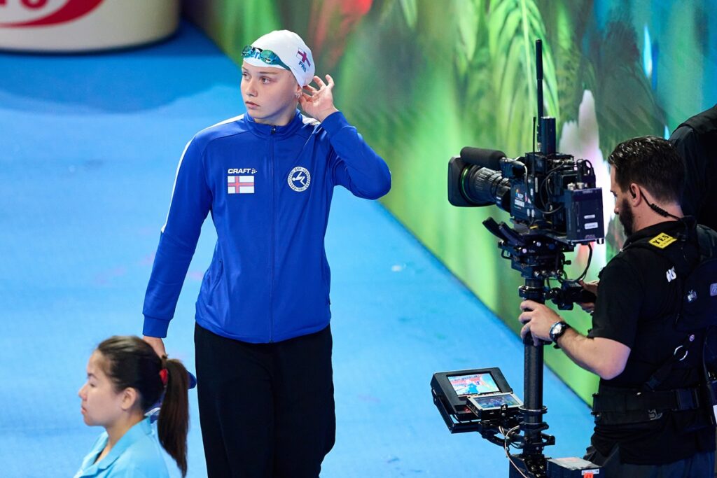 Bjarta í Lágabø (2009, SuSvim) royndi seg í morgun í 100 metra ryggsvimjing á HeimsMeistarastevnuni 2025 í Singapore, og varð har nr 54 av 56 við tíðini 1:09.15. Sí úrslitalistan her á omegatiming.com
